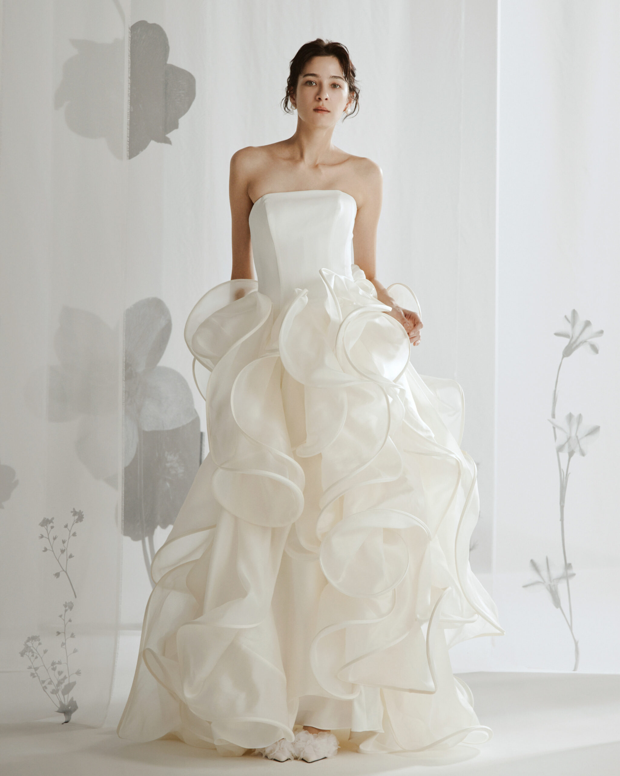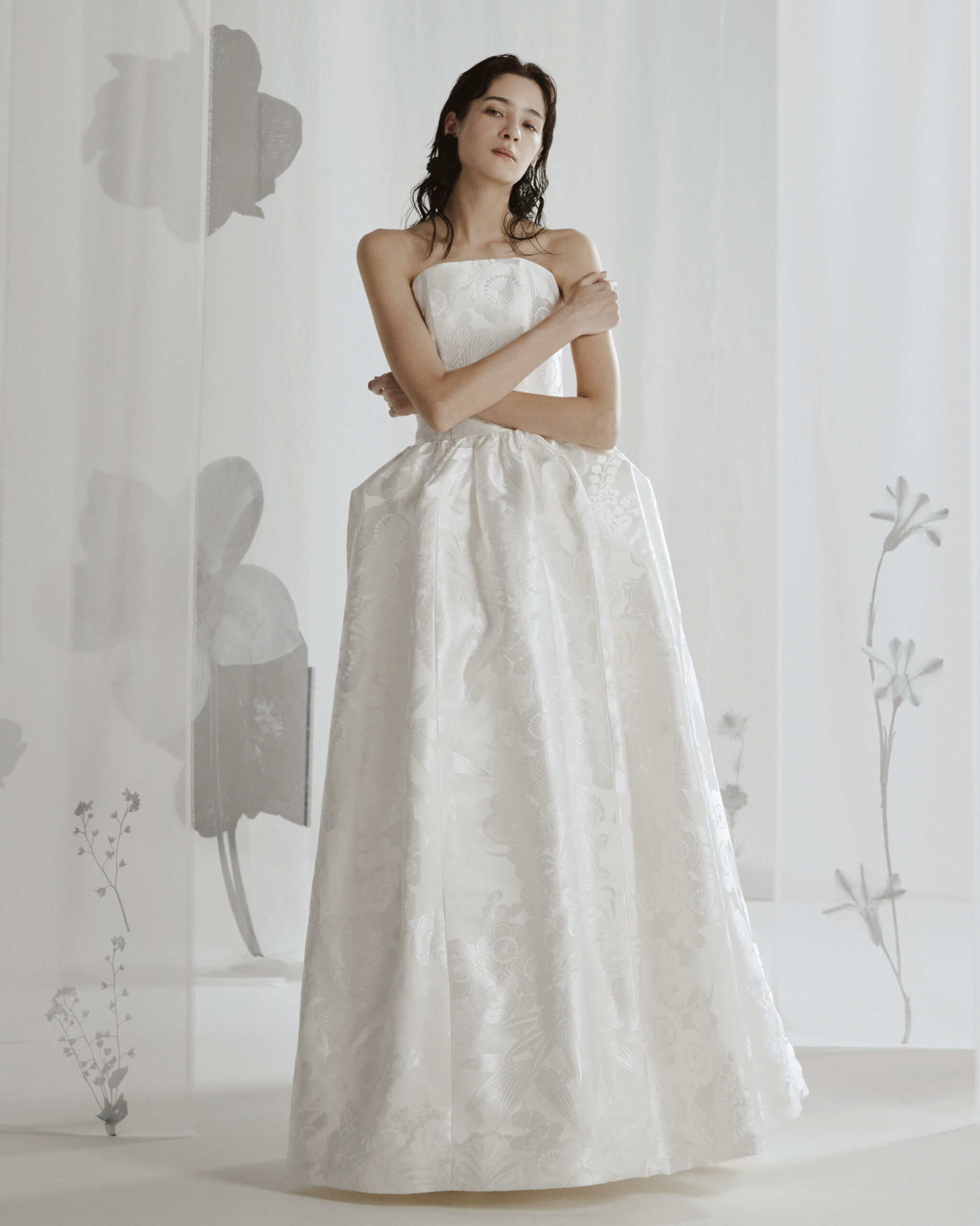 ブランド名のHWIT(フゥイット)はWHITEの古語で色が生まれる前の状態、眩い光を意味しています。私たちは日本の花嫁様に向けてデザインしているオリジナルドレスで培ってきた経験を活かして日本と西洋の美しさが融合した文化的で創造的なドレスをバルセロナブライダルファッションウィークで発表します。