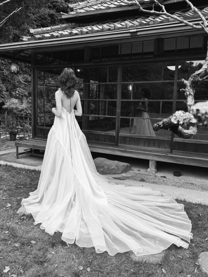 着物の哲学を現代のブライダルへ昇華する、日本発のカルチュラル・クチュールブランドとして、無駄のない構造美や世代を超えて受け継がれる思想を、現代のドレスとして再構築しています。私たちが大切にしているのは、表面的な華やかさではなく、時間とともに深まる美しさと、着る人の人生に寄り添い続ける一着です。