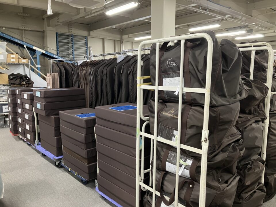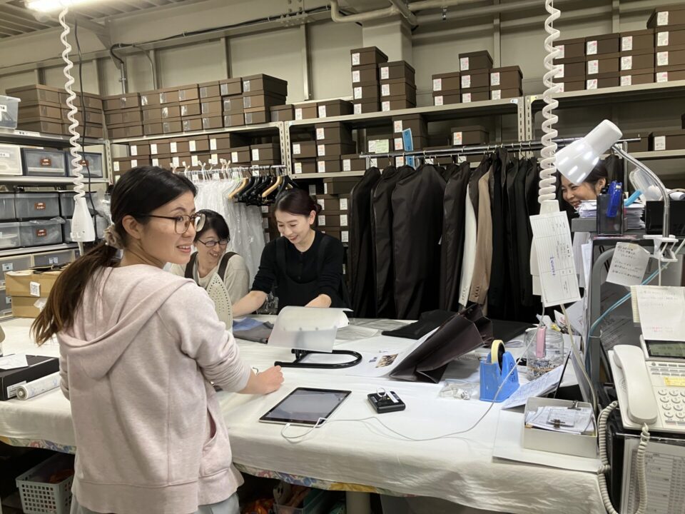 衣装を準備する人、小物を整える人、式場に納品する人など、役割を分担しながら一つの流れを作っていきます。