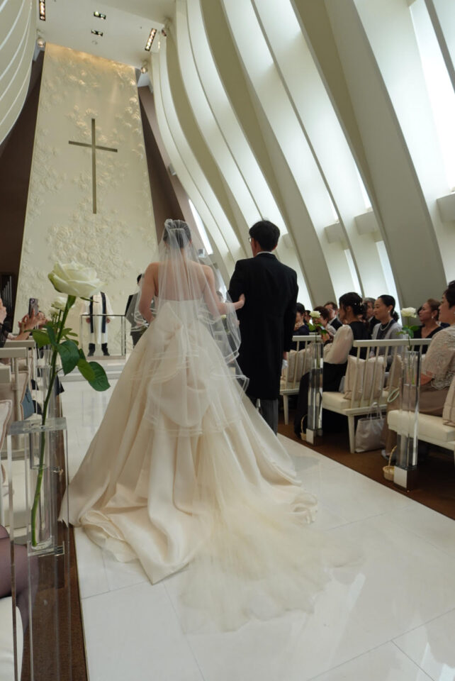 やはり、自分が働く会社の衣裳を身にまとった花嫁姿を目にした時の喜びや、誇らしさはひとしおで、思わず涙がこぼれてしまいます。