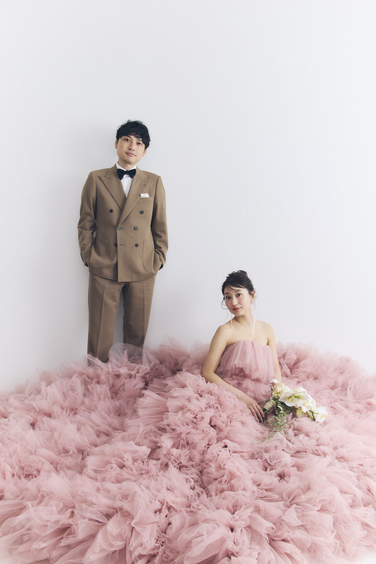「普段はピンクを着ないけれど、撮影だからこそ挑戦したい」という花嫁さまも多く、特別なシーンで自分らしさを表現できるドレスとして人気が続いています。