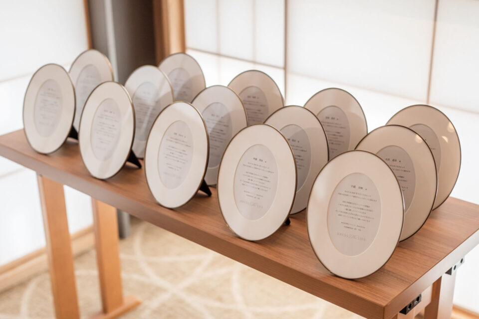 円形ホールを利用し、内定証書も円形のフレームでデザインされていました。