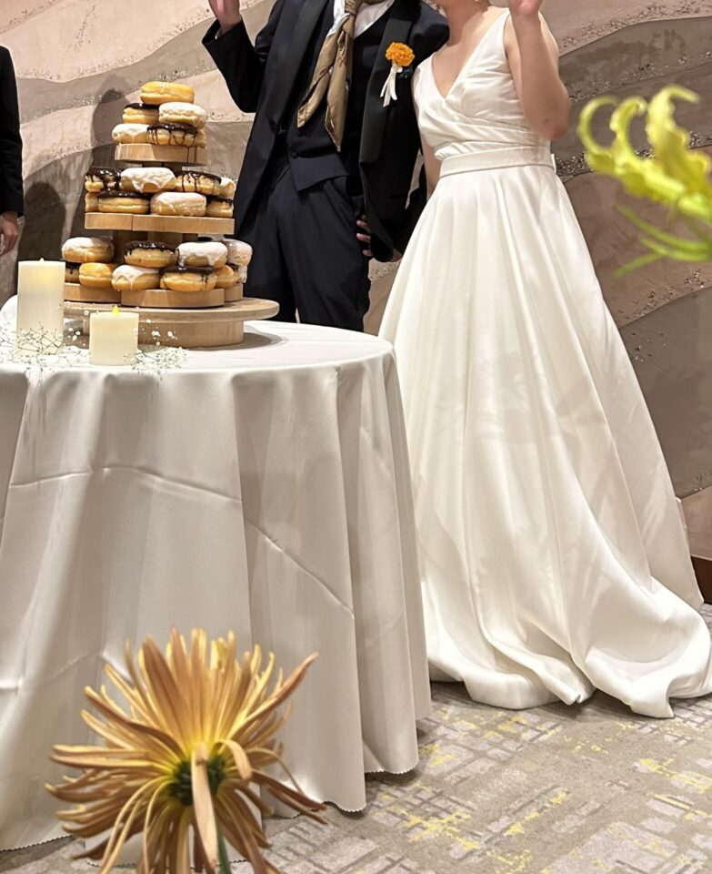 新郎新婦が夫婦になる前、カップルの時から「結婚する時は絶対私が衣装担当するから!」と話していたので、ついにその話が実現した瞬間でした。