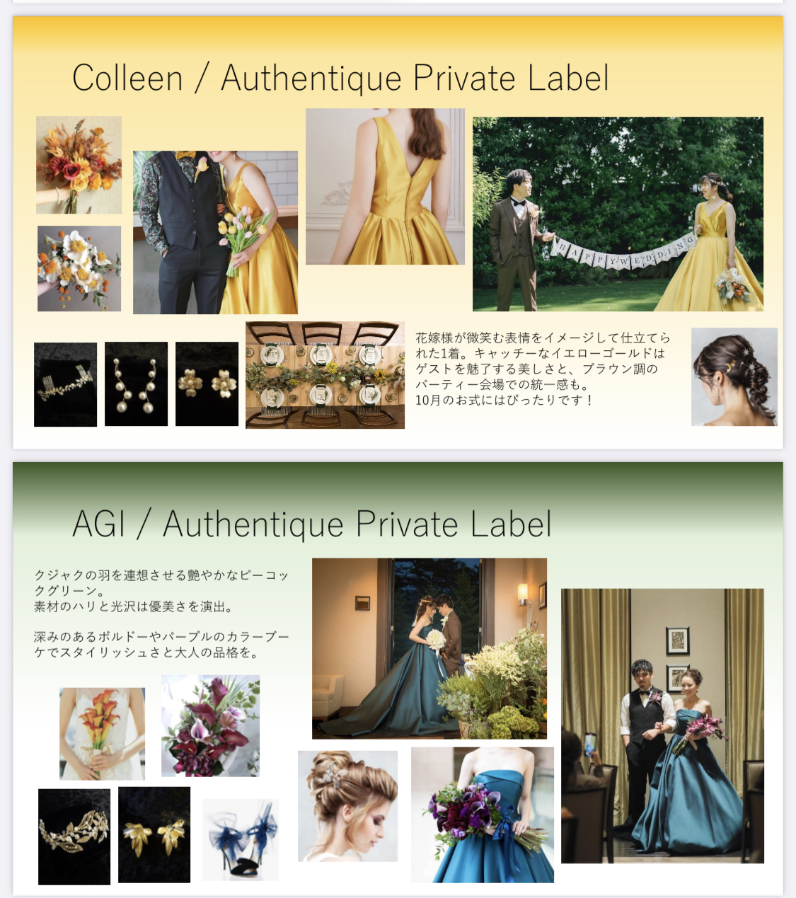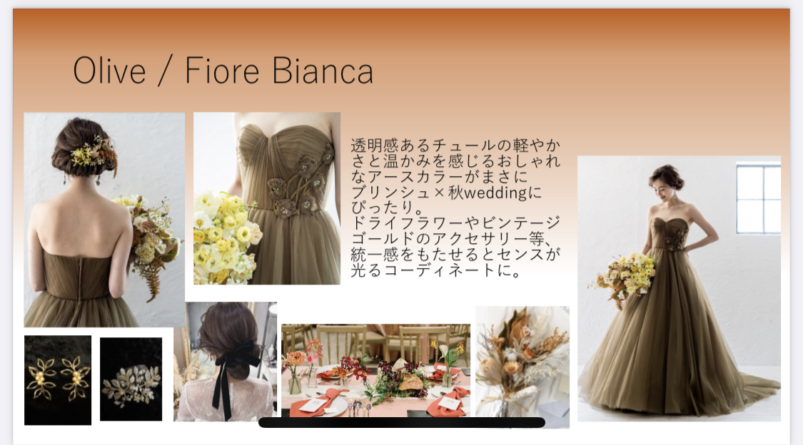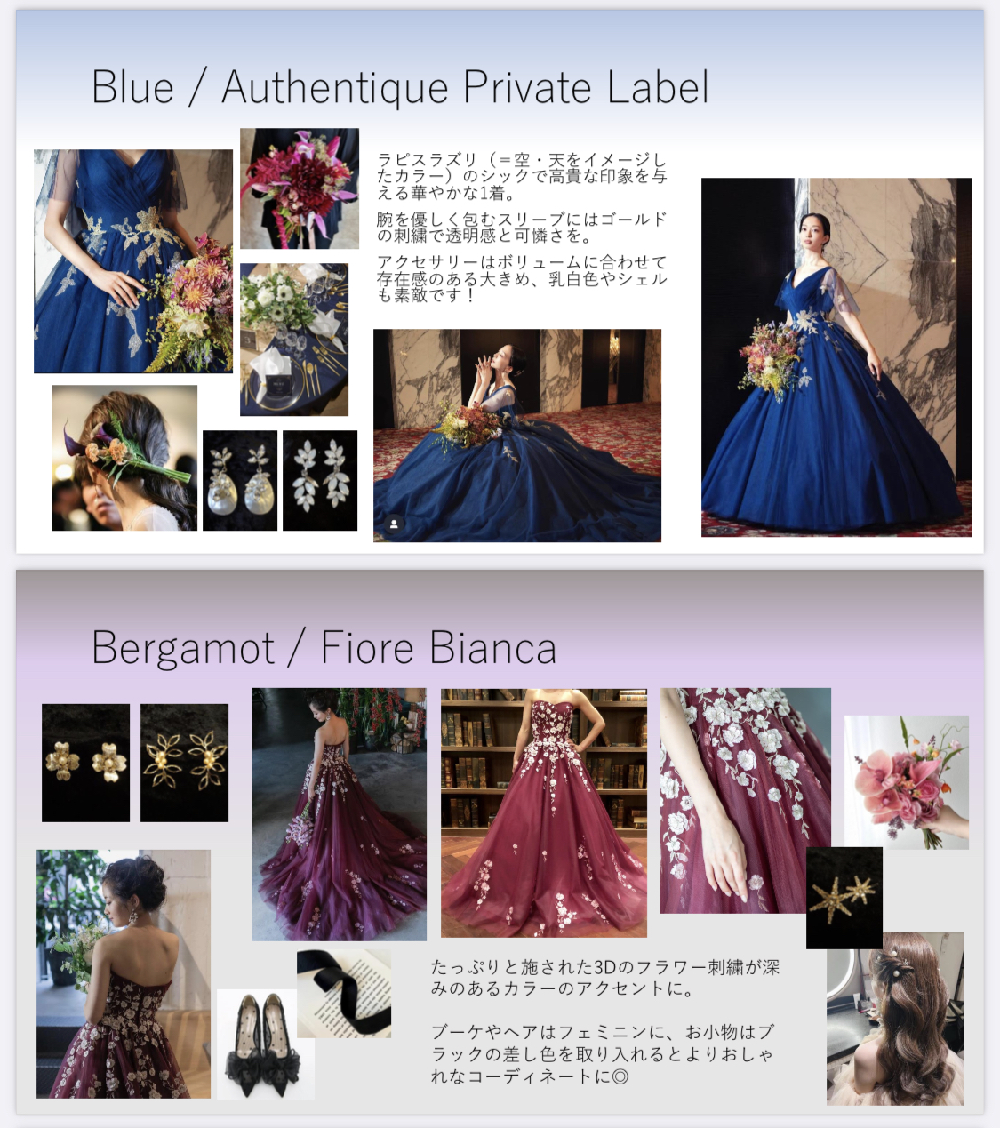 カラードレスの魅力をお伝えすべく打ち合わせの日にはご紹介しきれなかったお似合いになりそうなラインナップをピックアップし、ご提案させていただきました。