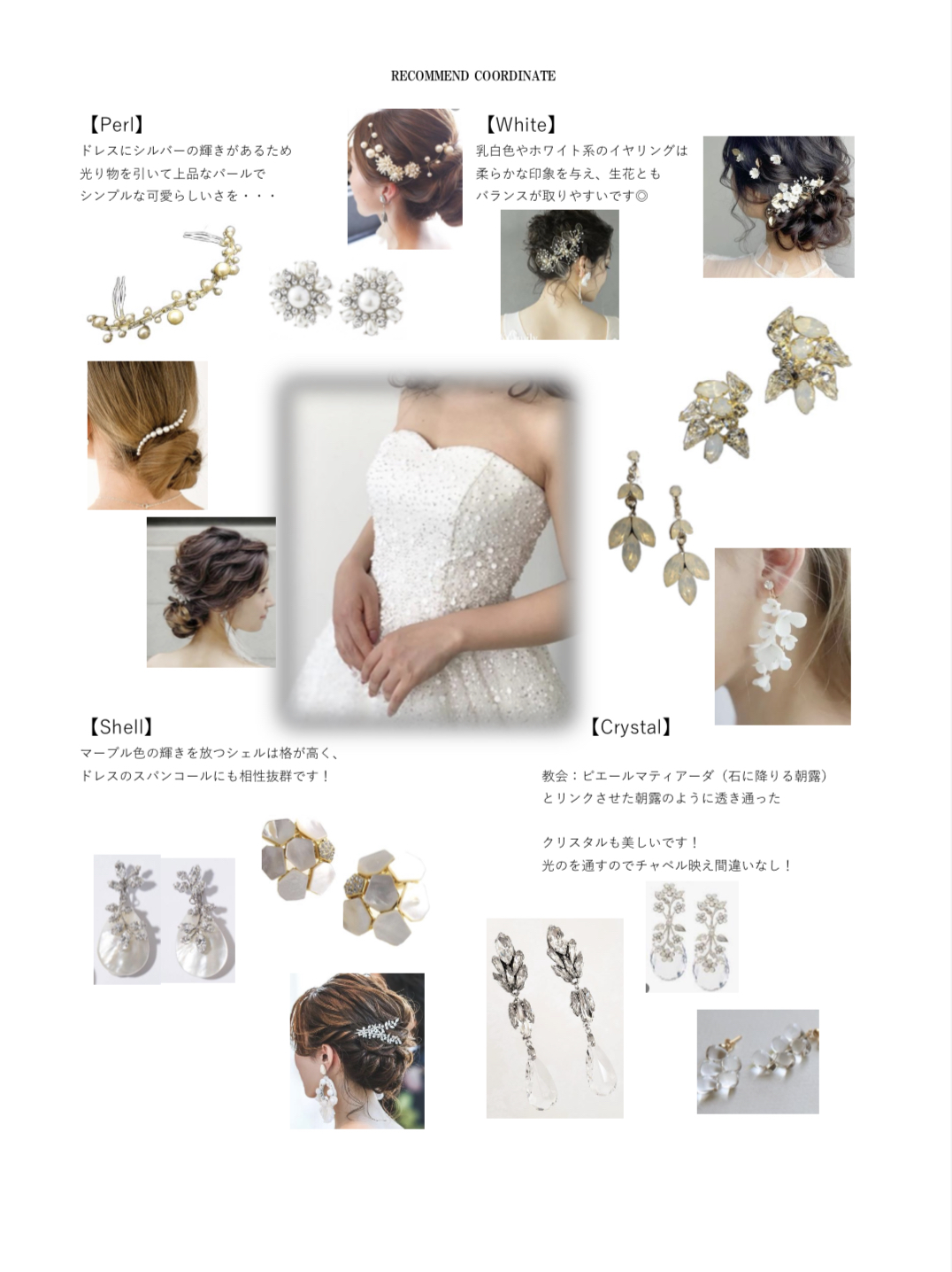▼こちらはドレスをご決定後にどんなアクセサリーが良いか迷っているといったご相談があり、どんな雰囲気に