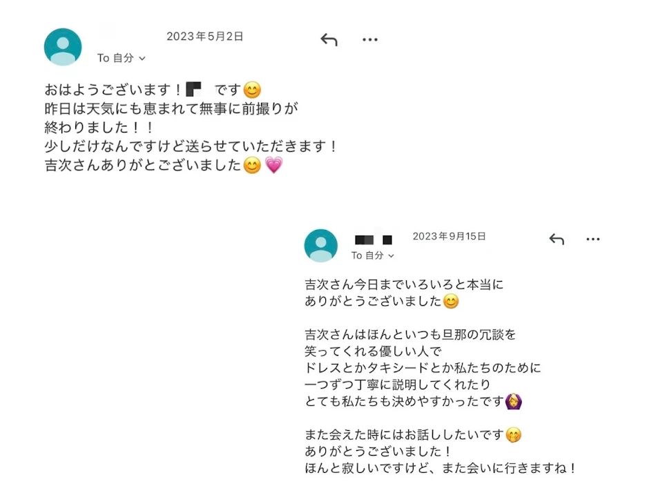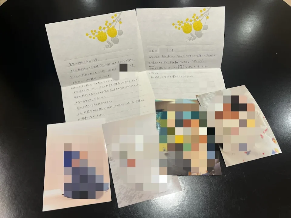 今回ご紹介させていただく宝物は、 お客様からいただいたお手紙やメール、当日のお写真です。
