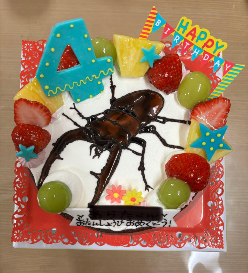 リクエストの愛してやまない昆虫のイラストケーキに大満足でとても喜んでくれました。